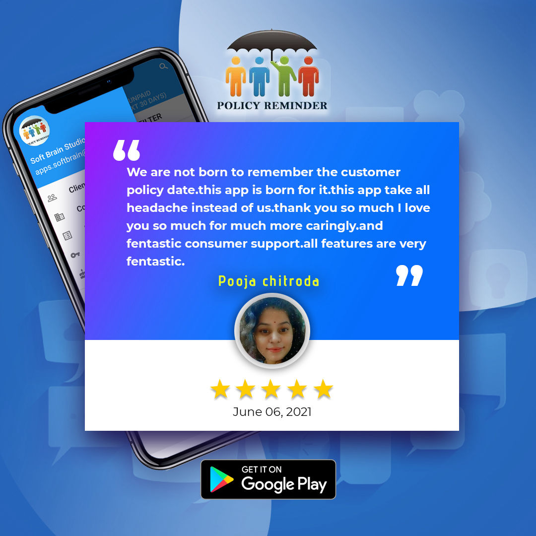 Many Features like listing policies which we wish to view & track, import/export via excel , backup policy data to your own google drive to assure 100% secure & private.